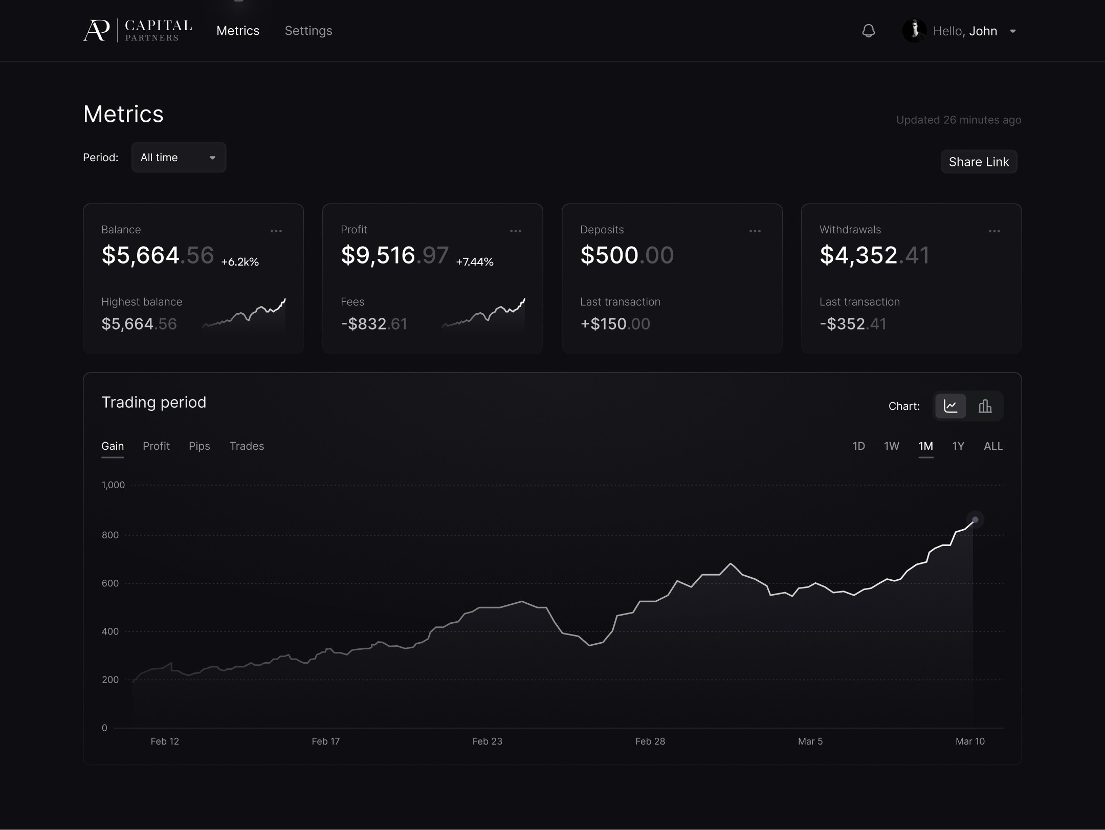 Link your account or accounts to one or more AP Capital Partners strategies after signing the risk mandate with our regulated compliance partner. This allows AP Capital Partners to facilitate the trading strategies.